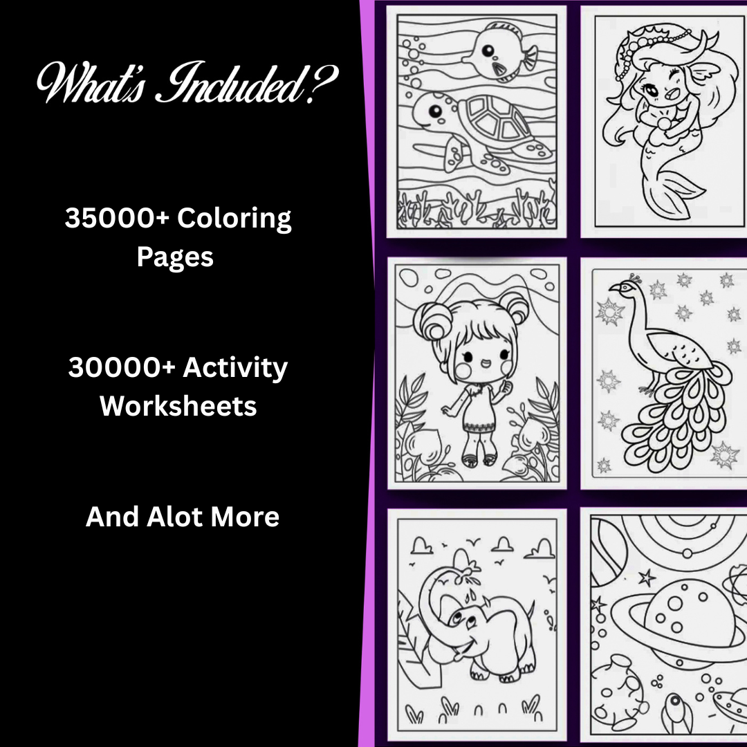 Unlock the ultimate kids activity mega bundle with 40,000+ printable coloring pages, worksheets, and fun activities, designed for preschools, homeschoolers, teachers, parents, and online sellers.